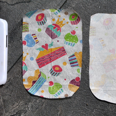 Zaczęłam od dokładnego oczyszczenia etui z resztek lakieru - zwykły zmywacz do paznokci sprawdził się w tej roli świetnie ;) Moje etui jest białe, więc idealnie pasowało do nowego wzoru. Jeśli jest ciemne, może przebijać przez cieką warstwę serwetki. Później do akcji wkroczyły nożyczki i główne bohaterki metamorfozy, czyli najzwyklejsze papierowe serwetki.